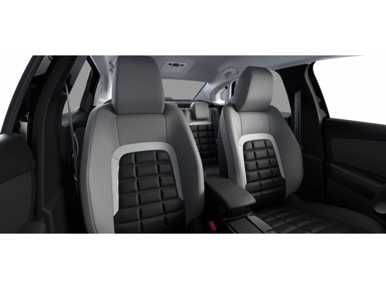 Asientos de tela (material principal) y de cuero sintético (material secundario)