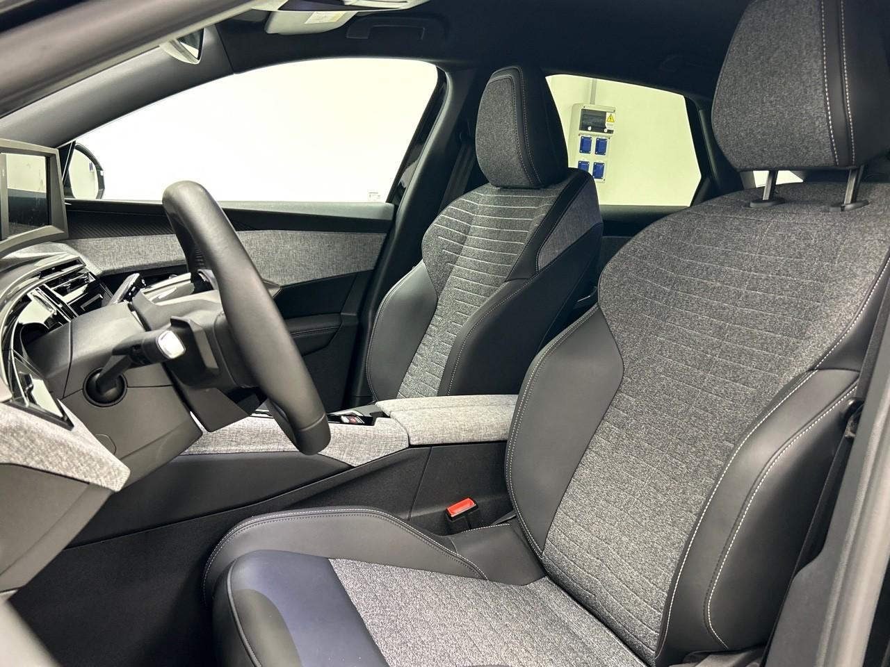 Asientos de tela (material principal) y de cuero sintético (material secundario)