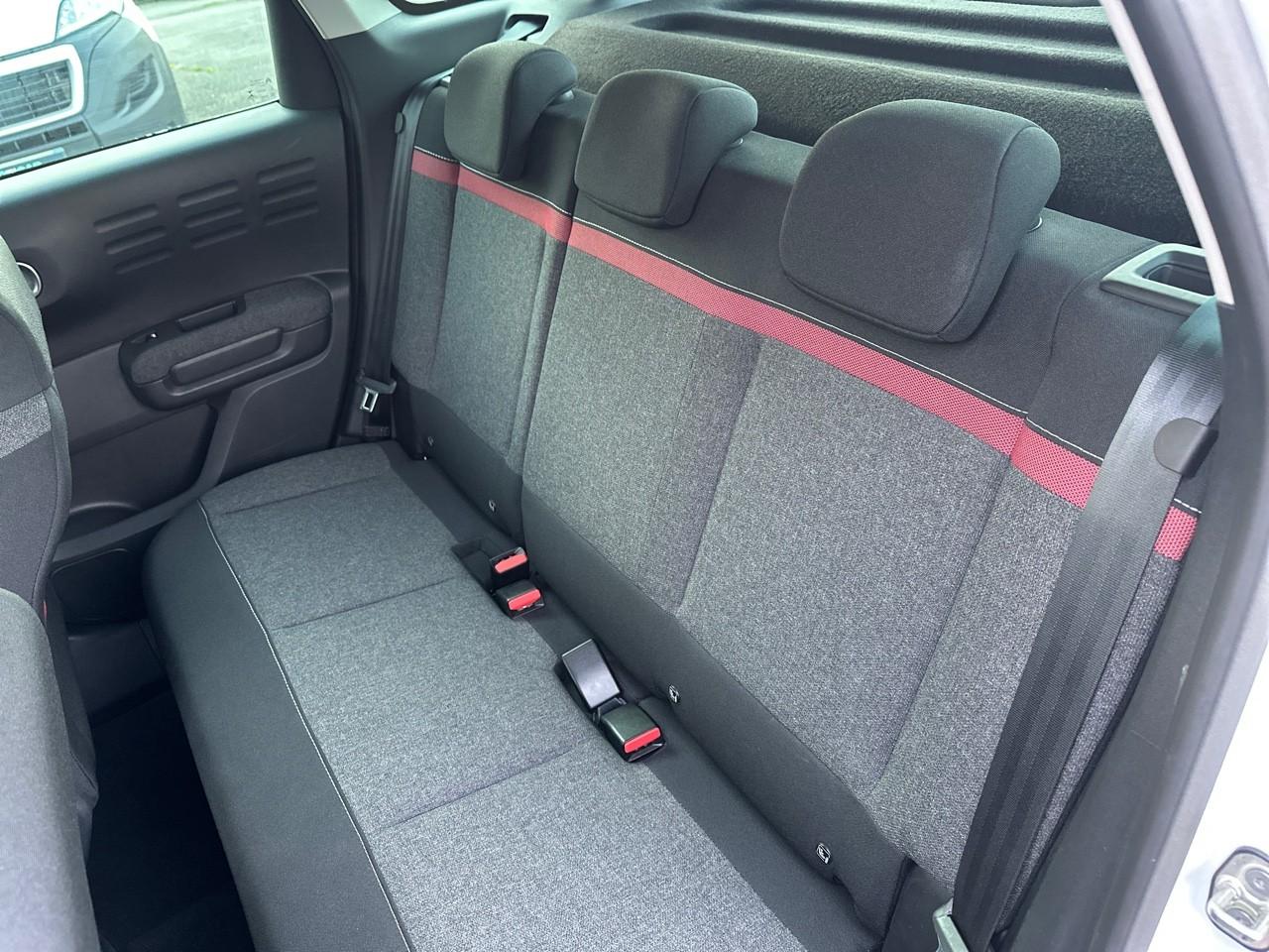Ambiance intérieure C-Series : Tissu Curitiba Gris Graphite avec étiquette brodée sur le côte du siège, la bande en haut du dossier en Tissu Triton Rouge avec surpiqûres Blanches, le bandeau de planche de bord TEP Corinthe Satisfaction Grey, et l...