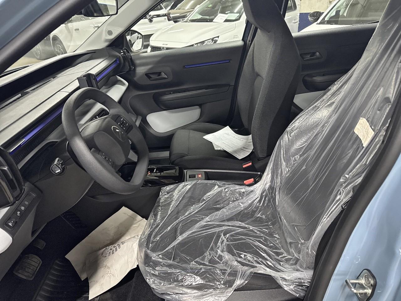 Garnissage Tissu Noir / Tissu Gris Chiné avec les décors sur les panneaux de portes AV/AR et sur la planche de bord Ultra Blue.