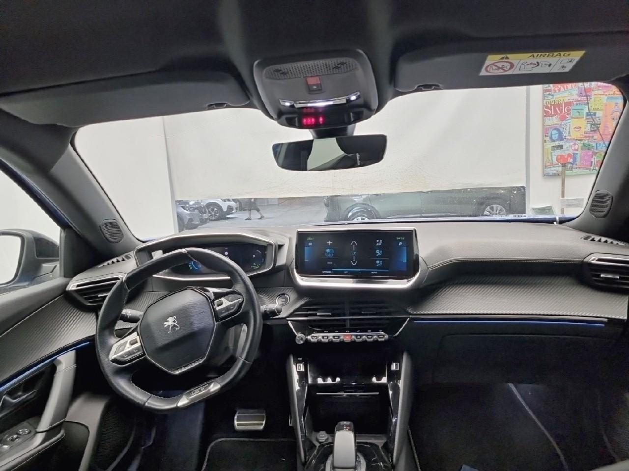 Volant compact cuir fleur avec laçage vert, Lion chromé et badge GT Line et commandes multimédia sur volant