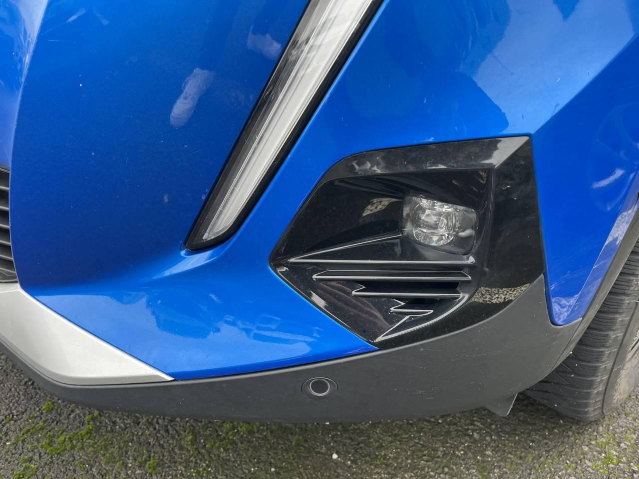 Volant compact cuir fleur avec laçage vert, Lion chromé et badge GT Line et commandes multimédia sur volant