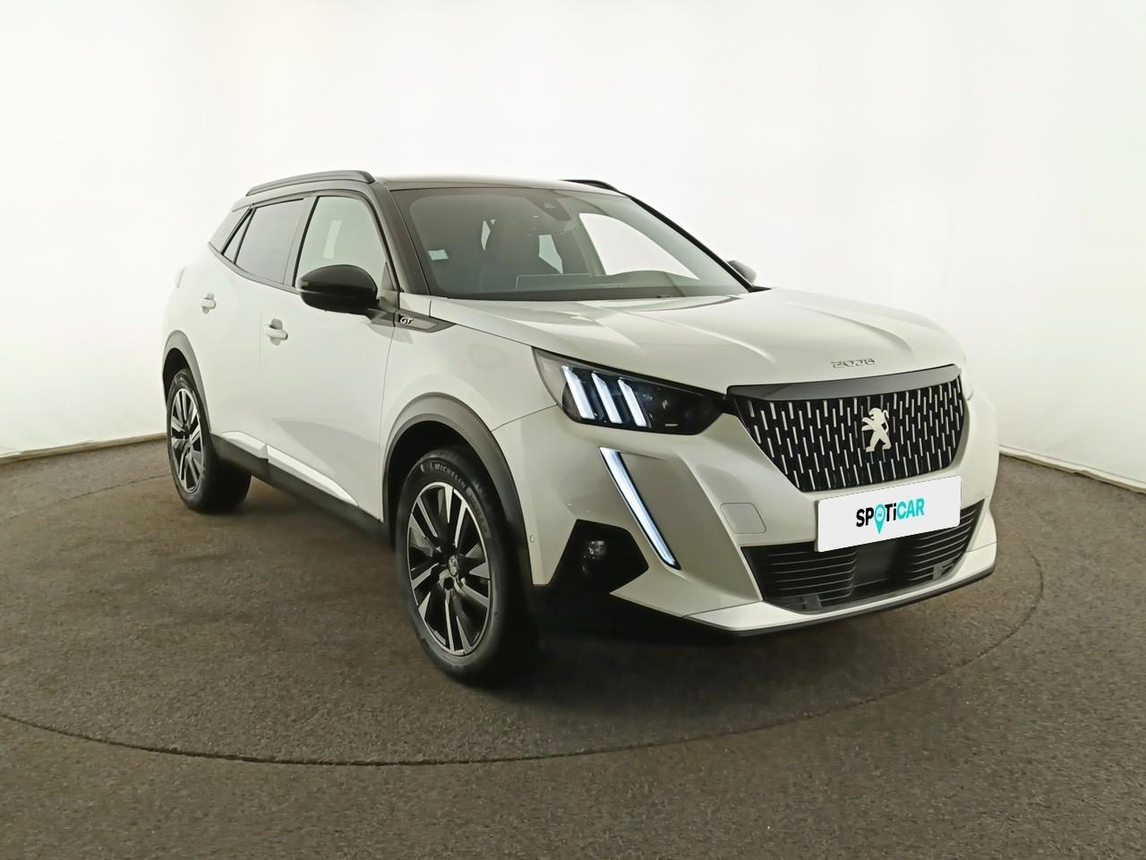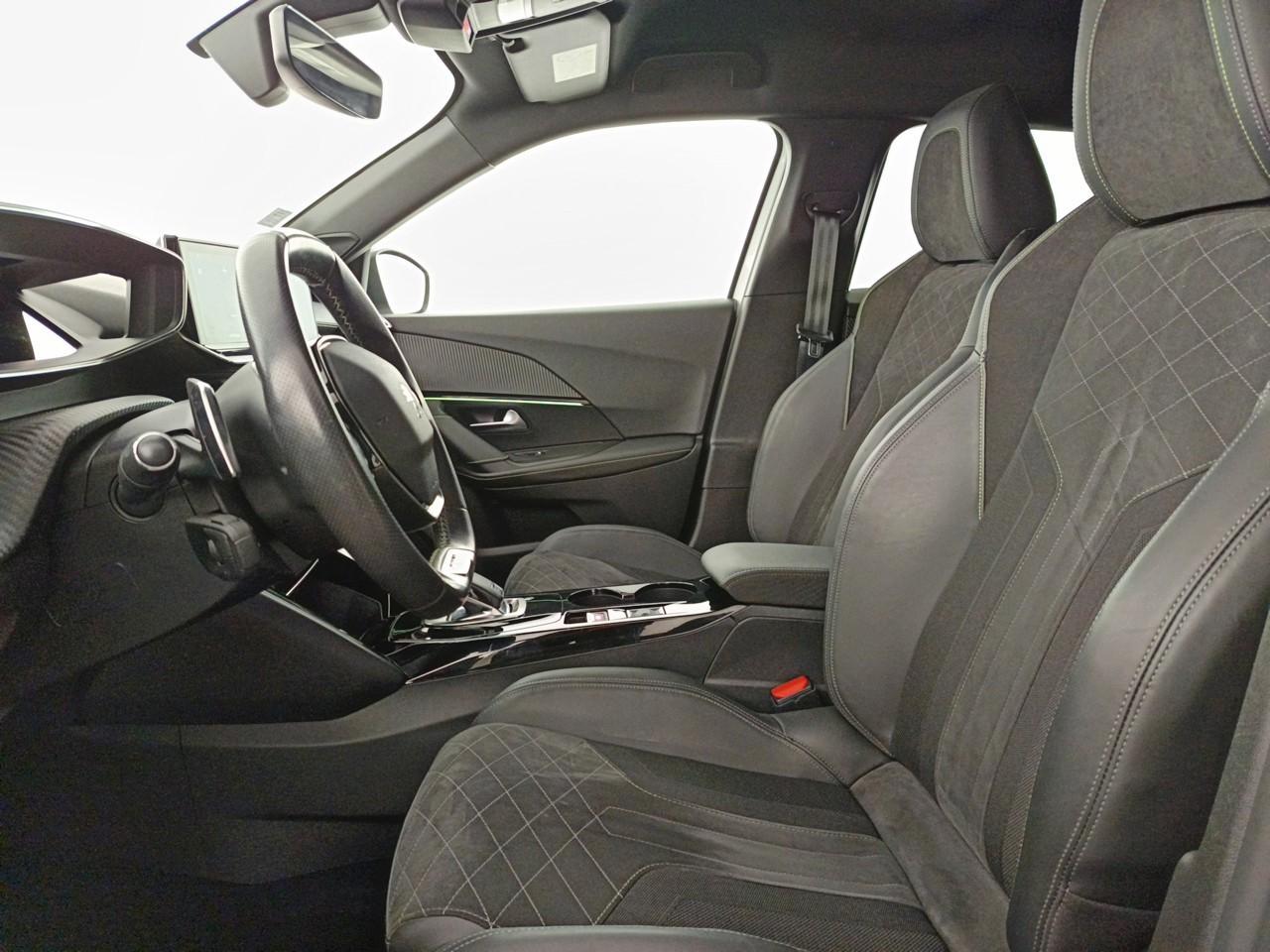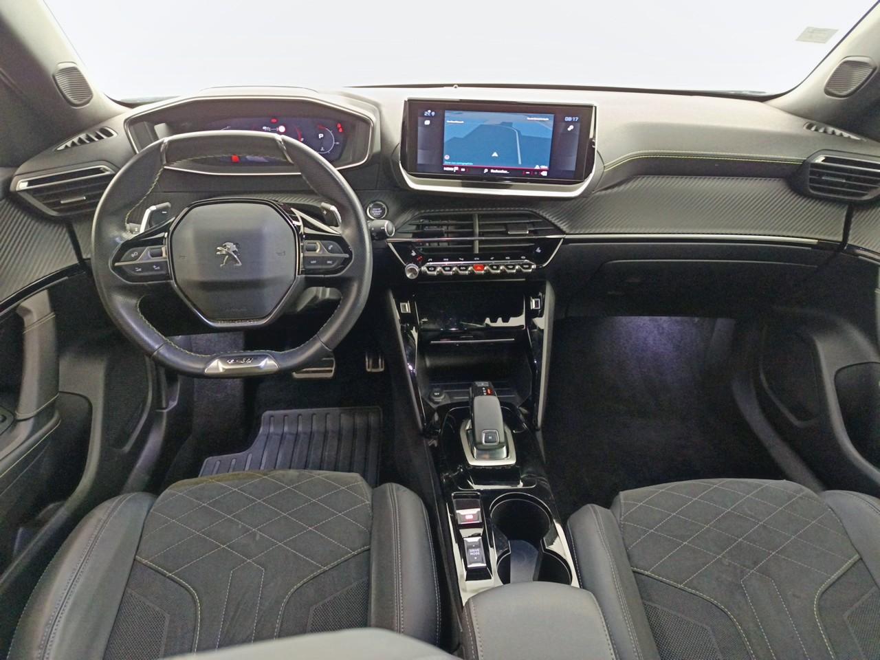 Volant compact cuir fleur avec laçage vert, Lion chromé et badge GT et commandes multimédia sur volant