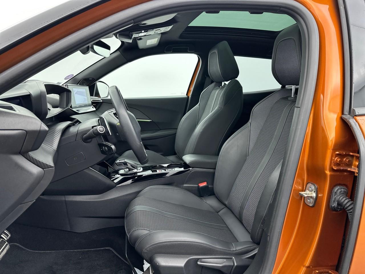 Volant compact cuir fleur avec laçage vert, Lion chromé et badge GT Line et commandes multimédia sur volant