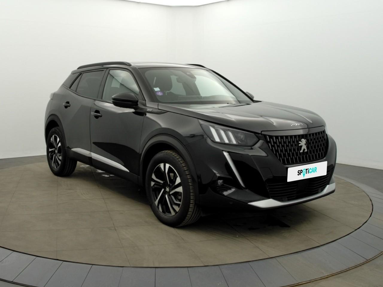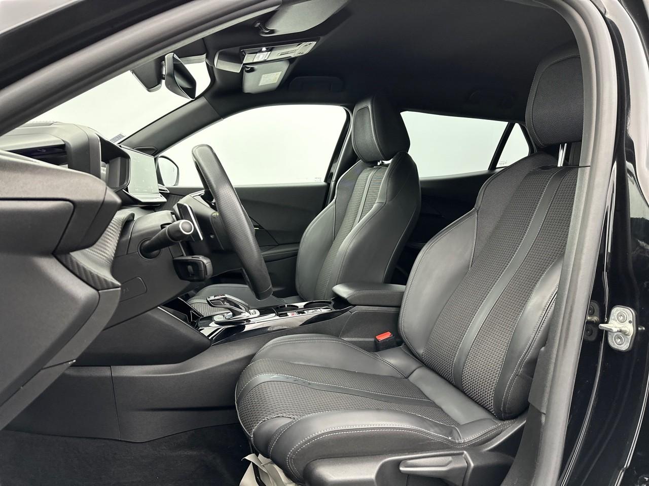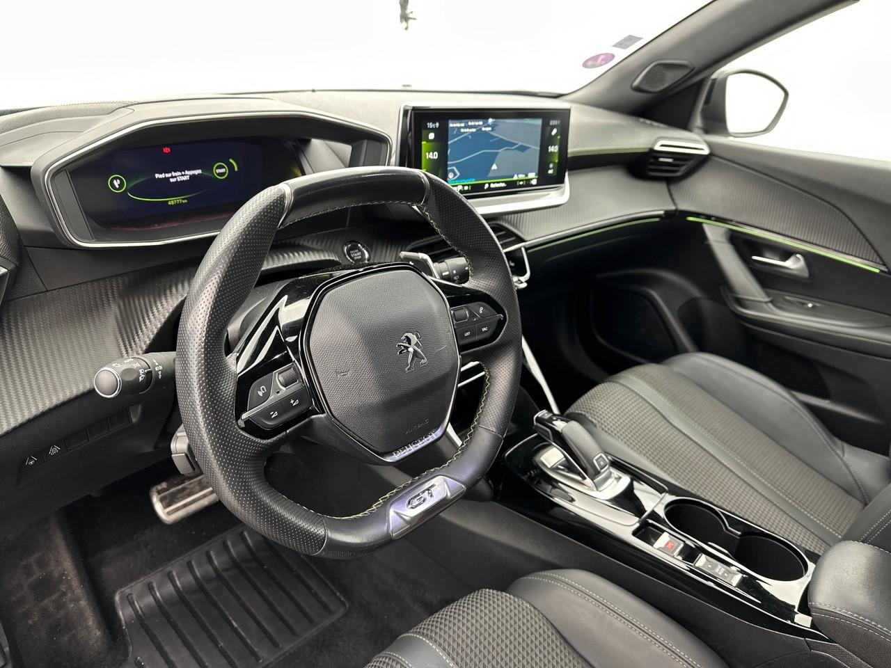 Volant compact cuir fleur avec laçage vert, Lion chromé et badge GT Line et commandes multimédia sur volant