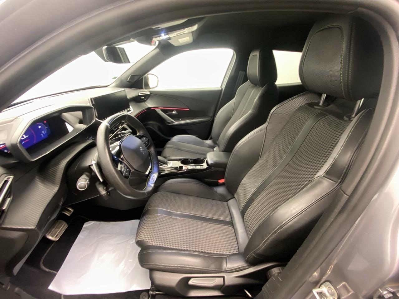 Volant compact cuir fleur avec laçage vert, Lion chromé et badge GT Line et commandes multimédia sur volant