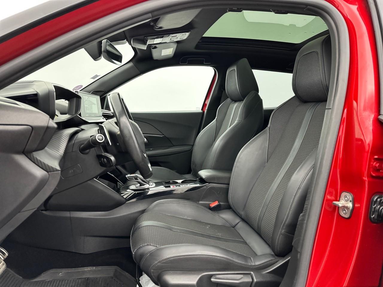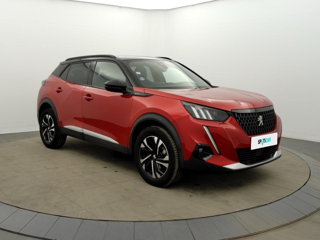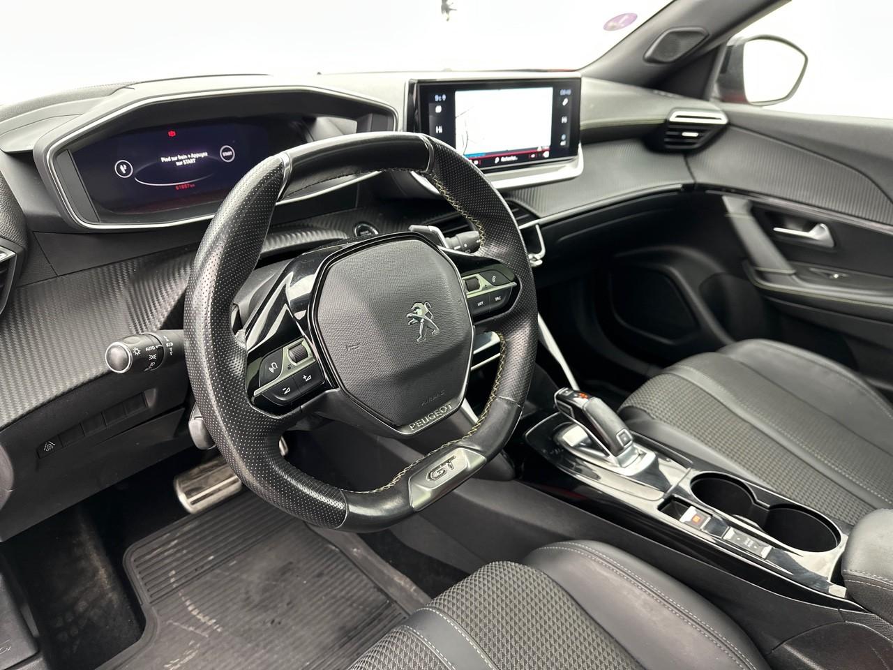 Volant compact cuir fleur avec laçage vert, Lion chromé et badge GT Line et commandes multimédia sur volant